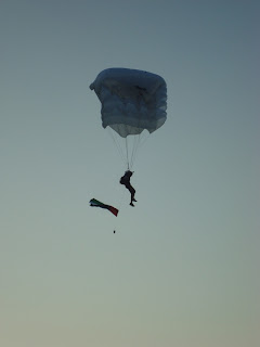 National Day made me think about how one of the coolest things about Dubai is the way that things simply.. get done. In the U.S. it seems that if anything big is going to happen, it will only do so in a long and drawn-out process. Road construction lasts decades (I'm looking at you, Kellogg), building construction is a similar story, and even small events take months and months to plan. In Dubai, things get built. Quickly. In honor of UAE National Day, AUD had a huge celebration, and the entire campus was transformed for the occasion. Traditional boats were scattered around campus, displays commemorating the event were put up, and a Sheikh's speedboat was brought for students to admire. On the main lawn there was erected a stage, booths, strings of lights, and more. At AUD the celebration started with a skydiving demonstration on the football field, followed by a show of traditional dance and singing. It was interesting to see this display of pride for a country in which just ten percent of the population actually considers itself "Emirati."